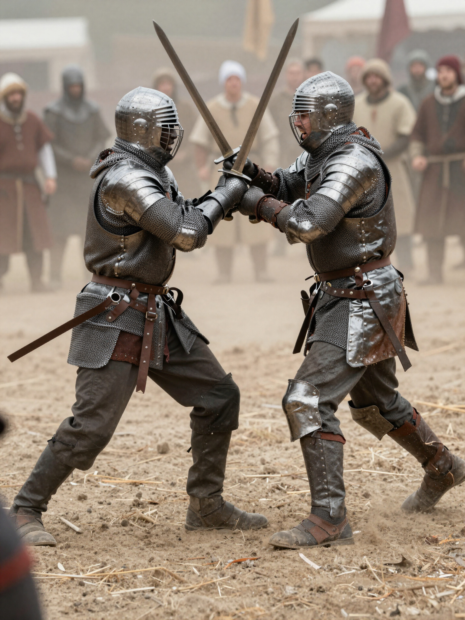 Witness the ground shake as armored knights clash in authentic combat, showcasing the power and discipline of medieval warriors in the festival arena.